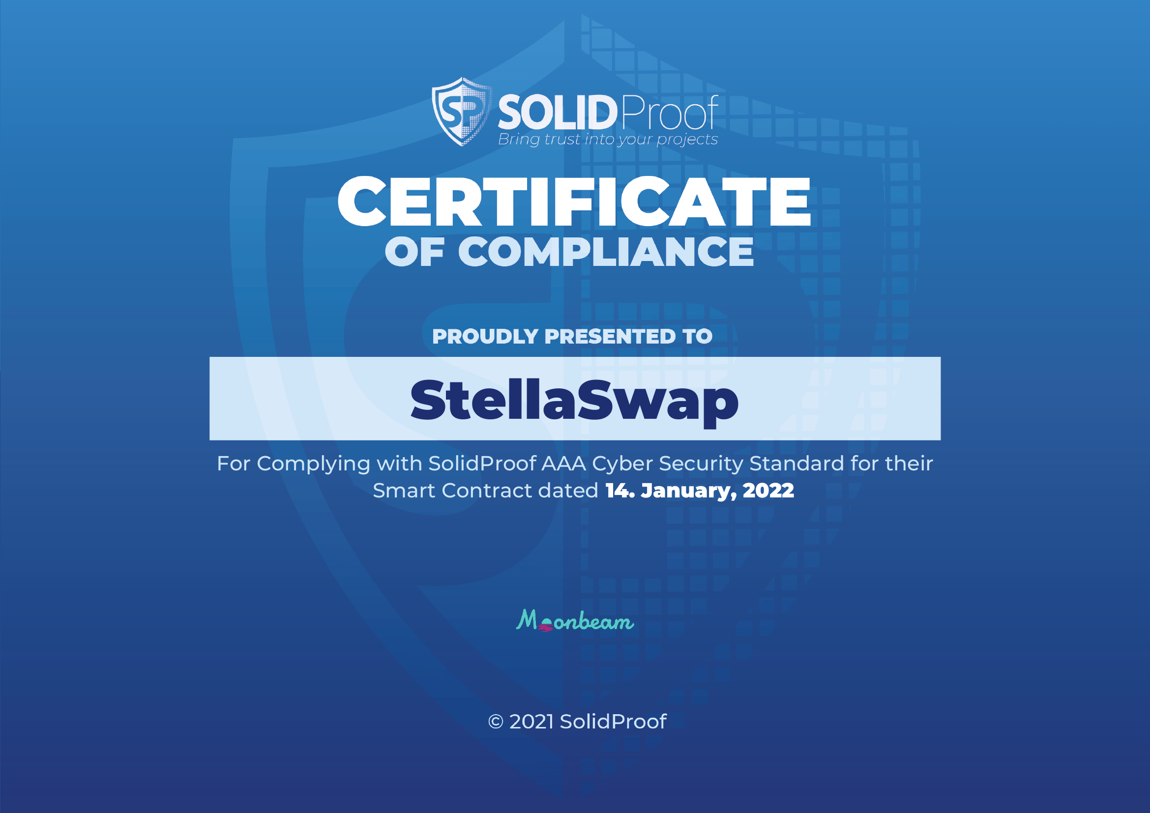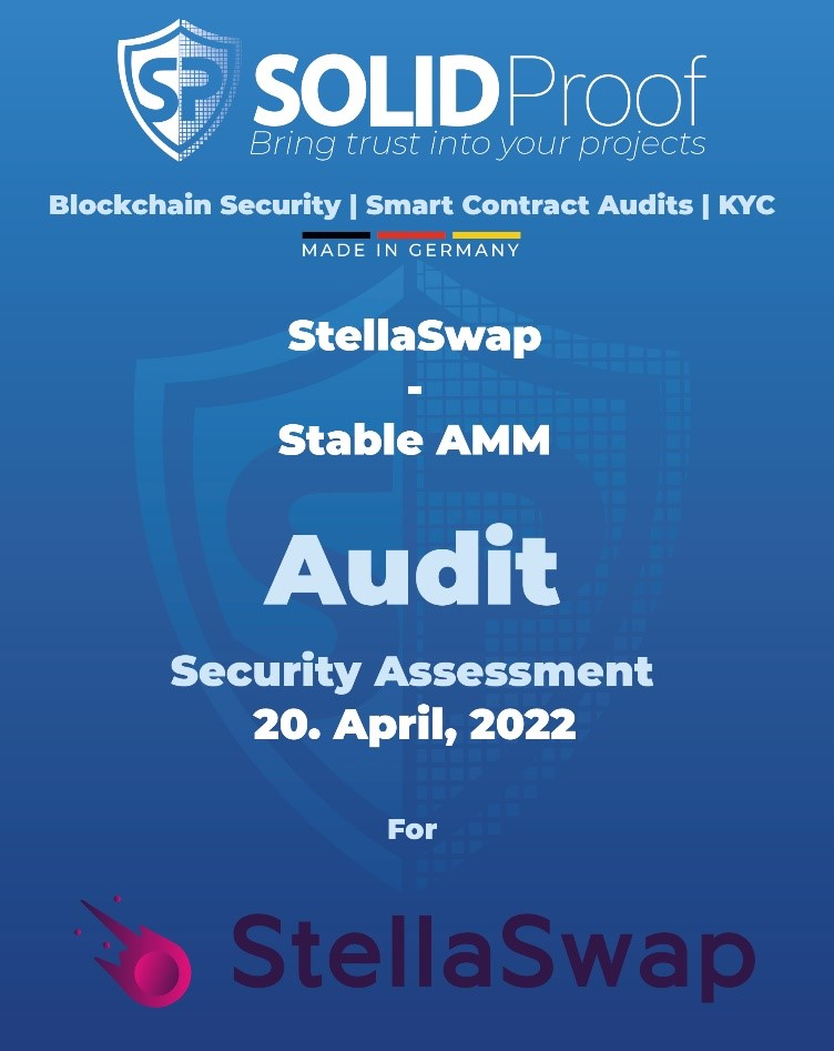 We engaged SolidProof for a comprehensive audit of our [Stable AMM](https://stellaswap.medium.com/stellaswap-launching-correlated-asset-amm-for-low-slippage-stablecoin-trading-with-minimal-fees-16837ef23f43) before launching. The full audit of our Stable AMM can be found here: